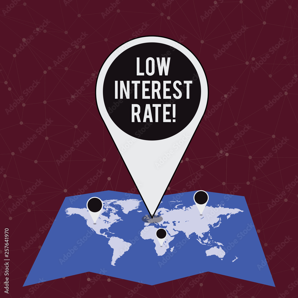 Handwriting Text Writing Low Interest Rate Conceptual Photo Manage Money Wisely Pay Lesser Rates Save Higher Colorful Huge Location Marker Pin Pointing To An Area Or Gps Address On Map Stock Illustration